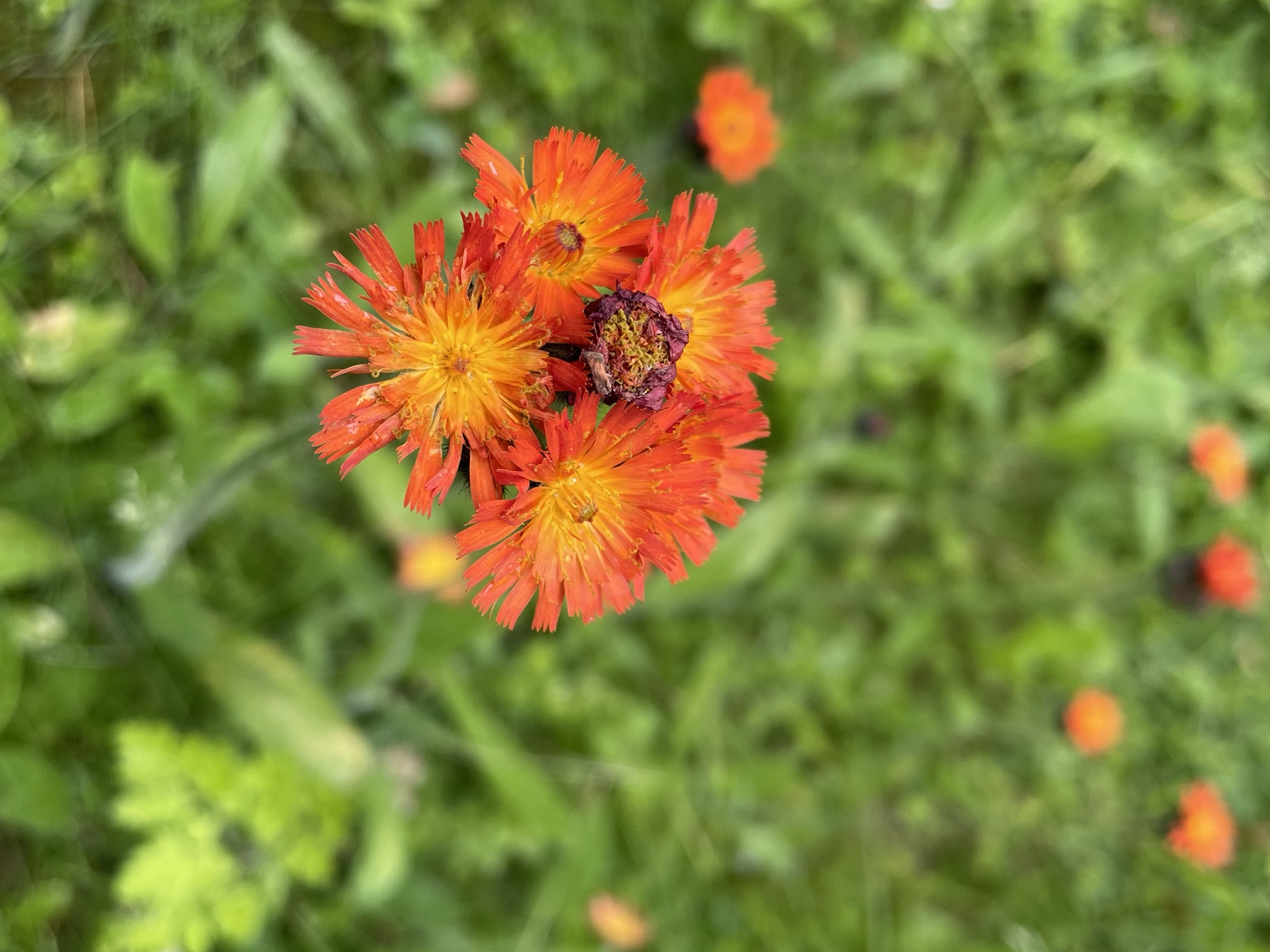 blomster lige nu. Den hedder Pomeranshøgeurt på dansk, men man kan godt forstå kælenavnet når man ser den i fuld flor.