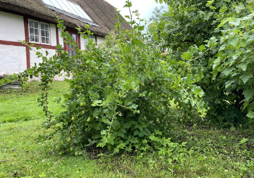 Nu starter sæsonen for stikkelsbær. Vi har fem buske som har givet masser af frugt til grød og syltetøj de sidste 20 år. De passer sig selv. Det er nemt, men de stikker, det er ganske vist.