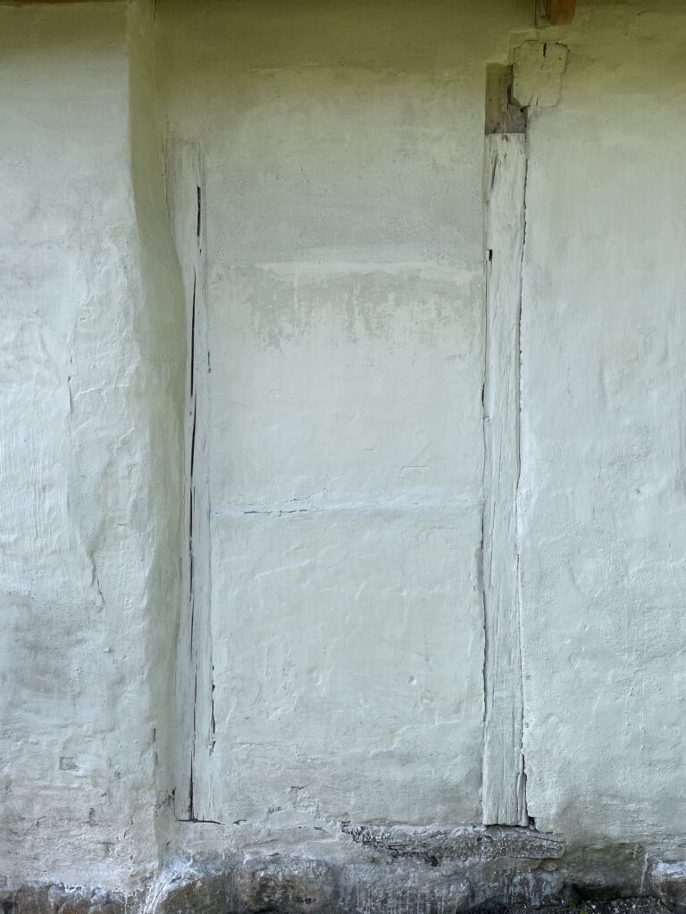 Den dør vi alle skal ud af, men ikke ind af igen. Bygården har en ligdør. I gamle dage blev de døde båret ud af denne dør når de skulle begraves. Det var vigtigt at mure døren til igen, inden begravelsesfølget kom hjem. Ellers risikerede man, at den dødes sjæl slap ind i huset. Det må være gået galt en enkelt gang, for vi har et spøgelse i stuehuset, som blandt andet, driller os i køkkenet. Der er et bestemt sted, hvor vi ligesom støder ind i en person og vi taber maden på gulvet. Hvis det er pizza, er det altid med oversiden ned af.