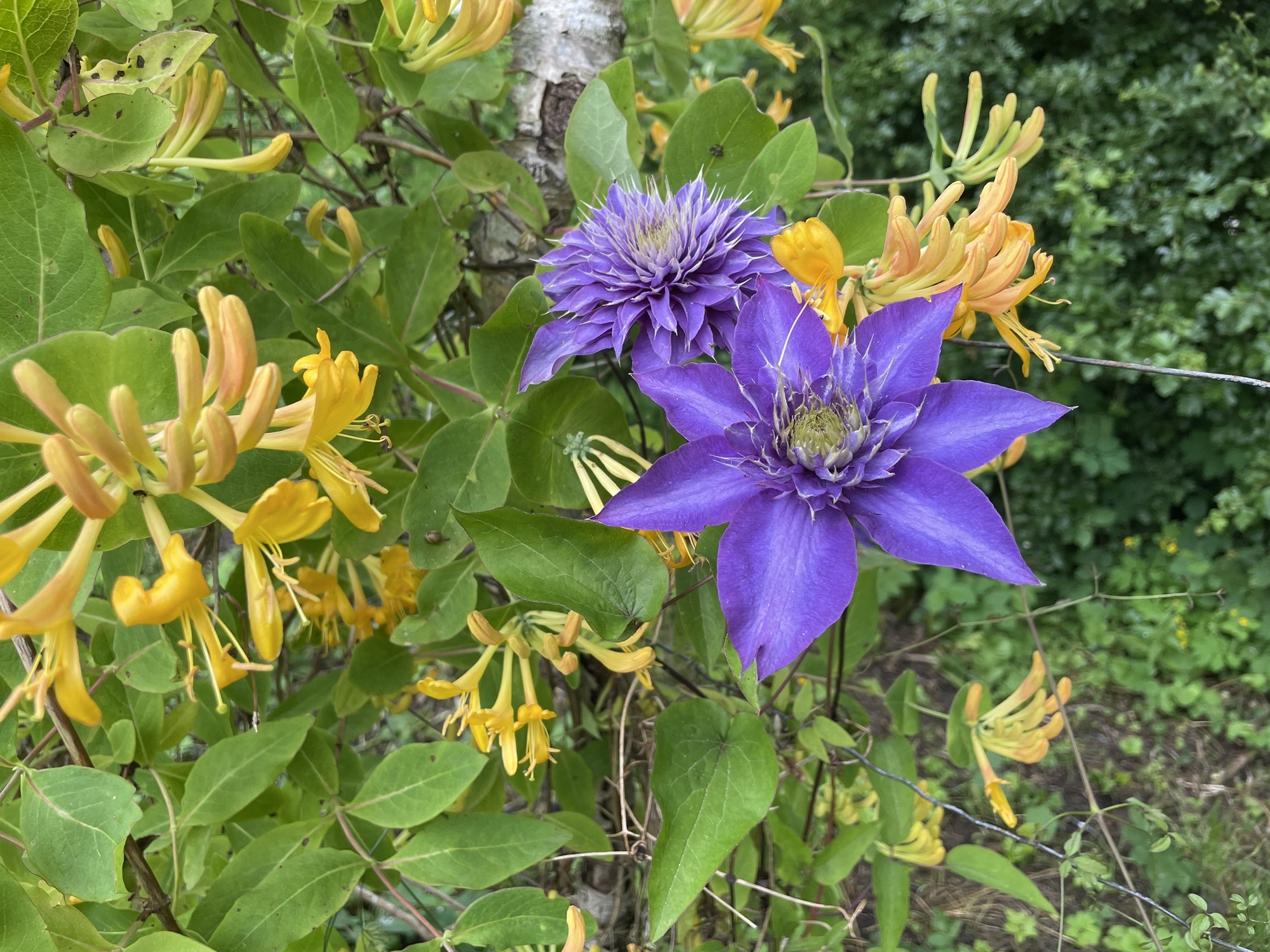 Normalt høster vi asparges indtil sankt hans, men vi stopper vi nu, der kommer ikke så mange nye op længere. Der har været rigtig mange i år og sæsonen startede tidligt. Vi har selvsåede morgenfruer som bunddække, måske tager de lidt for meget energi fra aspargesene. Vi har også skovjordbær som bunddække.